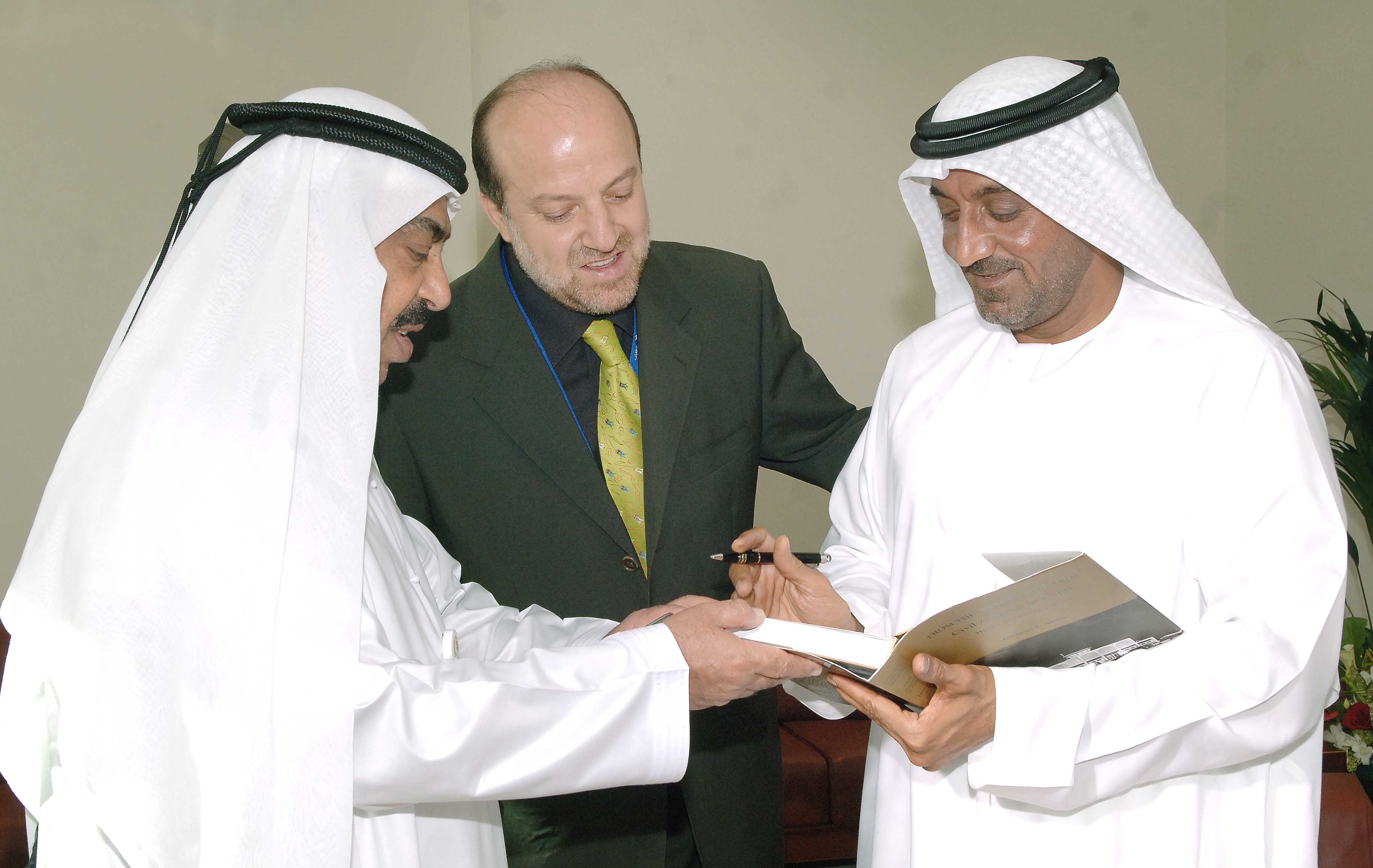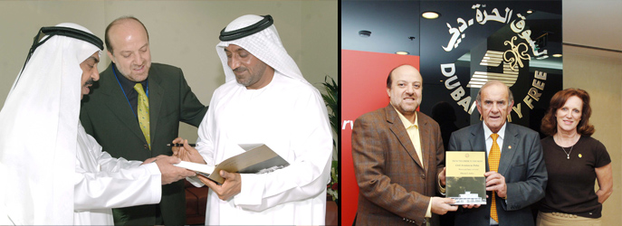 Ghassan Amhaz presenting a copy of his book to Mr. Colm McLoughlin, Executive Vice Chairman of Dubai Duty Free in the presence of Sinead El Sibai, DDF's Vice President for Marketing.